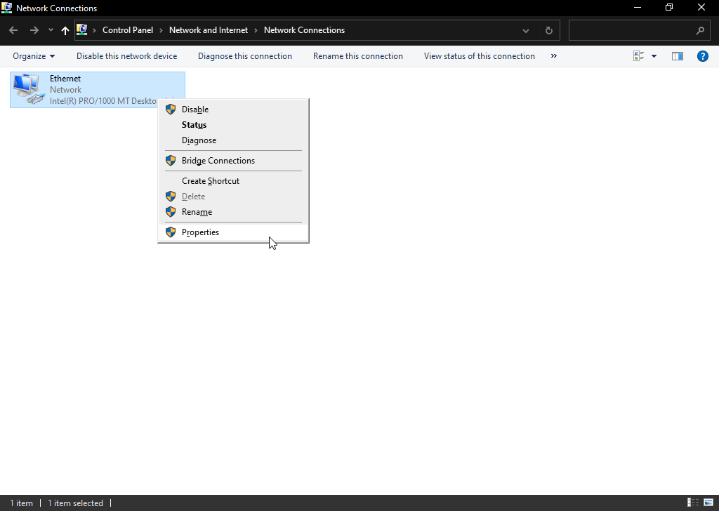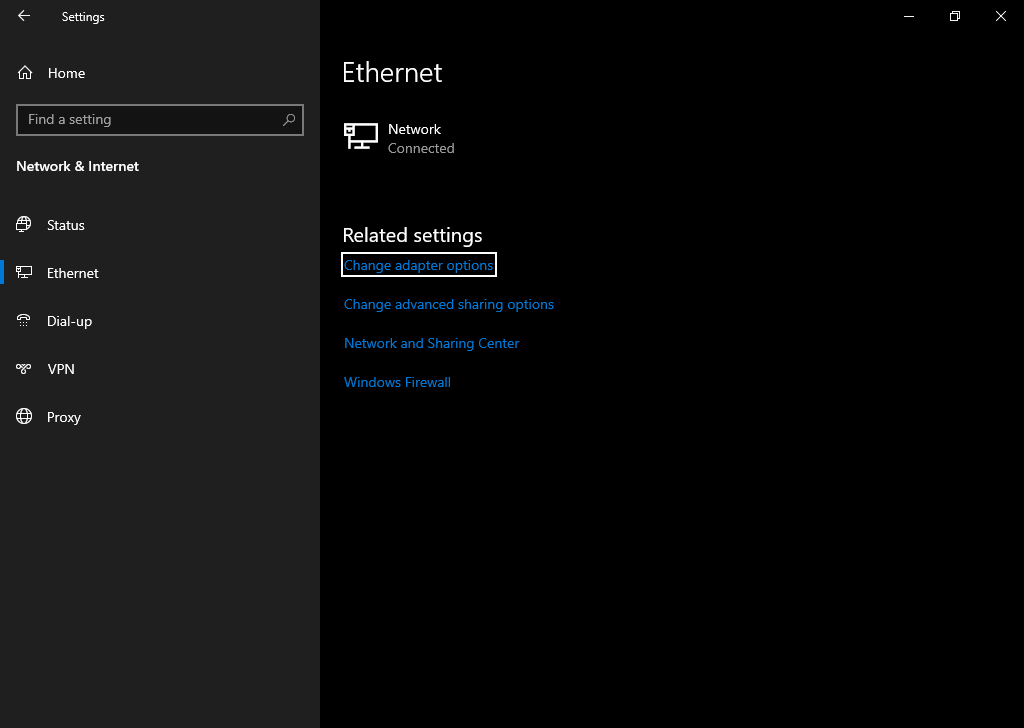 2. Depending on your connection type select Wifi or Ethernet on "Change adapter options".