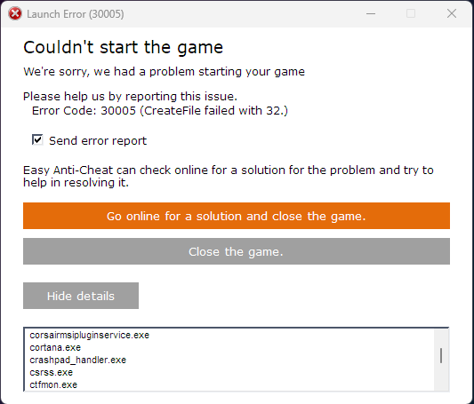 # Launch Error - CreateFile failed with 32.
