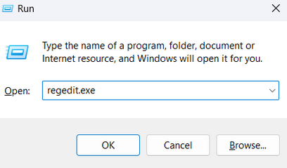 regedit.exe and press enter.