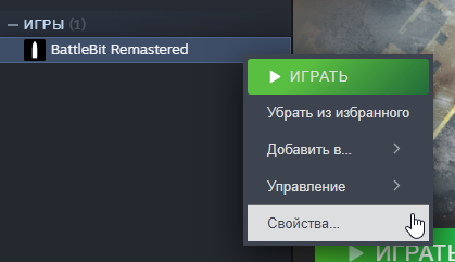 <figure><img src="https://27621656-files.gitbook.io/~/files/v0/b/gitbook-x-prod.appspot.com/o/spaces%2Fc9kot0Xe26oO8FizD4c9%2Fuploads%2Fgit-blob-1082de936d8238ed73910ff50f9d2991bead3446%2Fproperties%20(1).png?alt=media" alt=""><figcaption><p>Нажмите ПКМ по игре и выберите "Свойства..."</p></figcaption></figure>